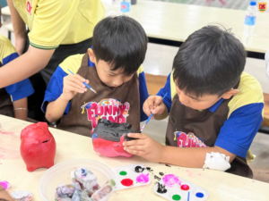 Những chú heo đất trắng xinh đã trở nên thật rực rỡ dưới đôi bàn tay khéo léo của các bạn nhỏ. Mỗi bạn một ý tưởng, một cách phối màu khác nhau, tạo nên những “chú heo” vô cùng đáng yêu và mang đậm dấu ấn riêng.