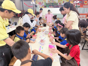 Sau hoạt động nặn tò he đầy hào hứng, các bạn nhỏ lớp 1 lại tiếp tục khám phá thêm những trải nghiệm thủ công thú vị khác trong cùng buổi tham quan.