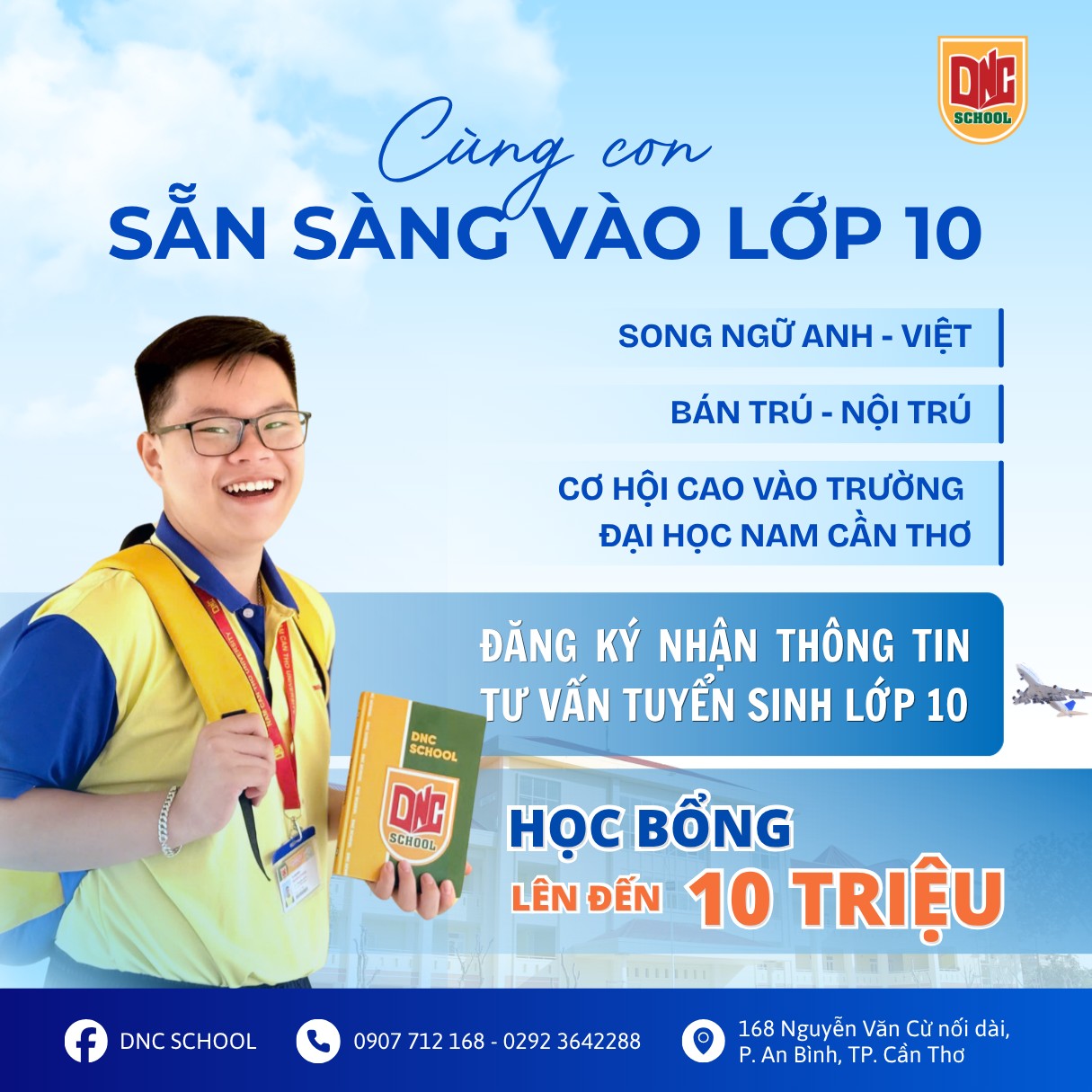 Trường Song ngữ DNC (trực thuộc Đại học Nam Cần Thơ) xin trân trọng thông báo chương trình tuyển sinh vào lớp 10 hệ phổ thông năm học 2024-2025, với định hướng đào tạo toàn diện và cơ hội học tập tại môi trường đại học hiện đại.